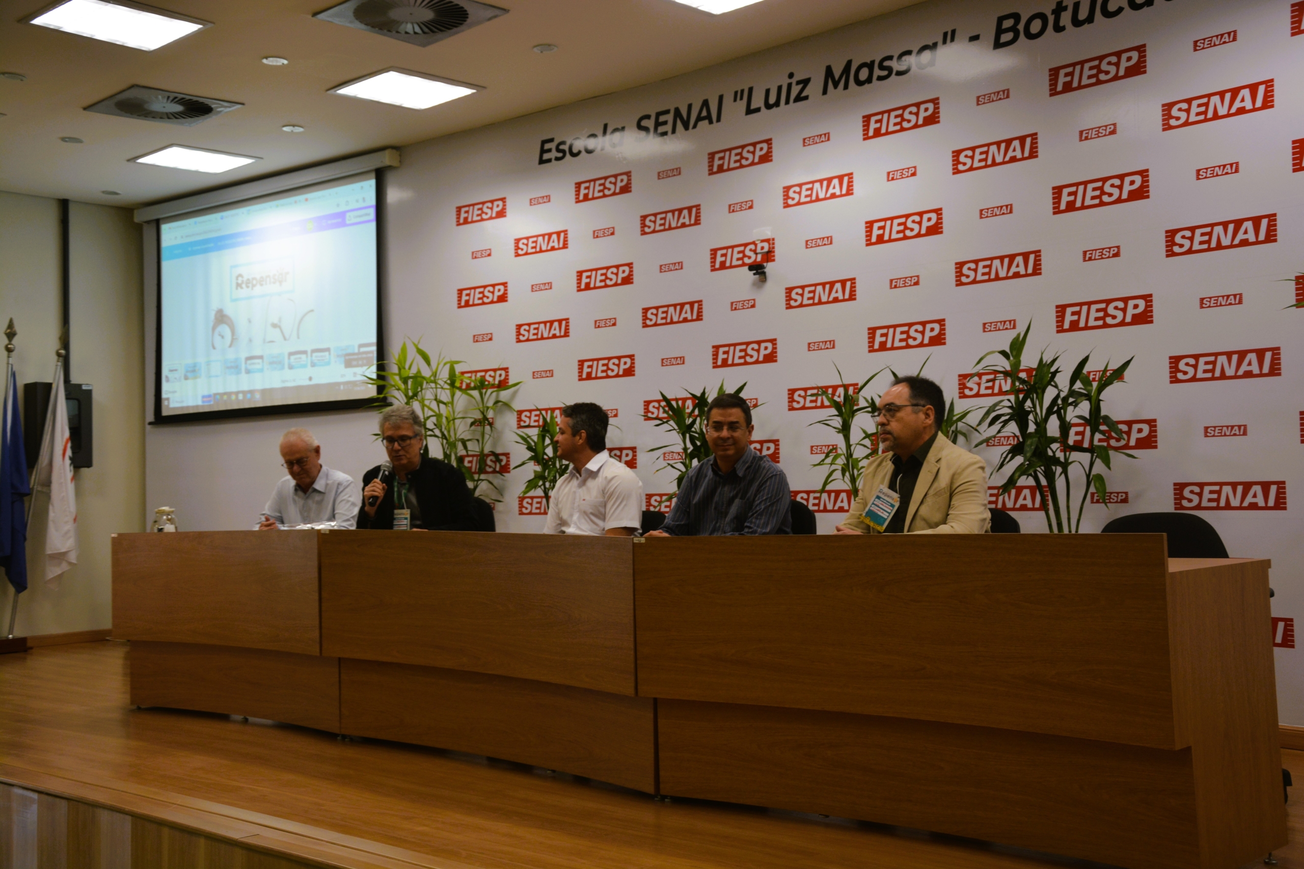 A mesa de abertura do evento foi composta pelo Superintendente do HCFMB, José Carlos Souza Trindade Filho; pelo Chefe de Gabinete, João Henrique Castro; pelo Diretor-Presidente da Fundação para o Desenvolvimento Médico e Hospitalar (Famesp), Antonio Rúgolo Junior; pelo Diretor da Faculdade de Medicina de Botucatu – Unesp, Carlos Magno Castelo Branco Fortaleza e pelo coordenador pedagógico do Senai Botucatu, Fábio Negrelli.